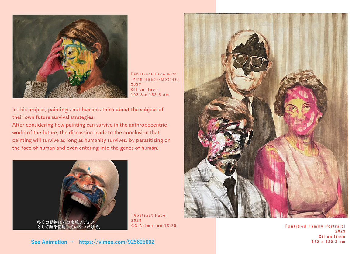 "Abstract Face with Pink Hands(Mother)" 2023 Oil on linen 103 x 153.5 cm