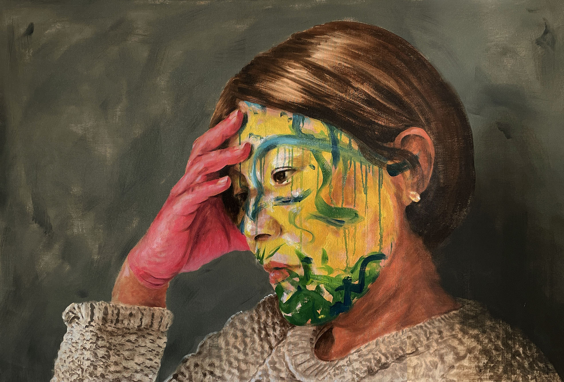 "Abstract Face with Pink Hands(Mother)" 2023 Oil on linen 103 x 153.5 cm